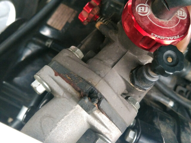 ただし走行中、かなりガソリン臭い。よく見たらキャブのフランジとインテークマニホールドの間のインシュレーター(パッキン)に穴が開いていた。さすが中華製、油断ならない。