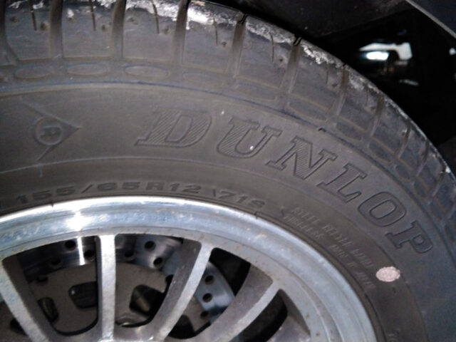 リアが DUNLOP SP65J 155/65R12 71S。軽自動車用タイヤで安心の日本製エナセーブ。