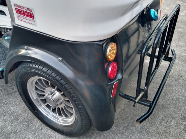 ノーマルの APtrikes125 は前後タイヤ&ホイールが前後共通で 4.00-12 の二輪用タイヤを履いている。だがバイク用タイヤだと接地面が少なく乗り心地が悪いので、多くのオーナーはだいたい交換するらしい。