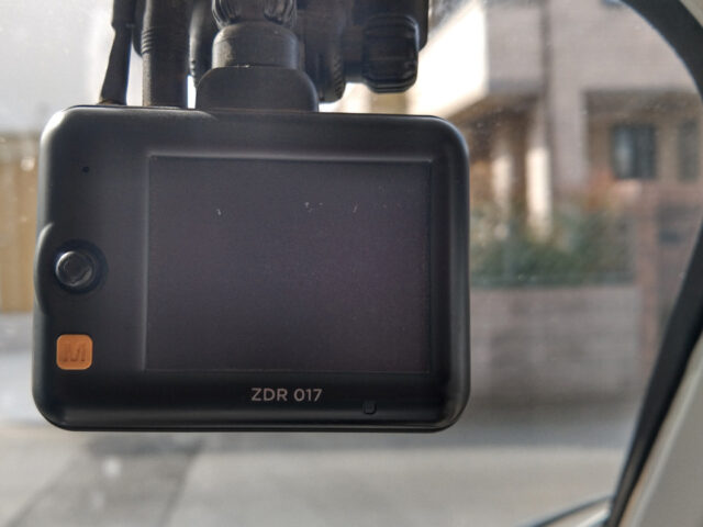 私の購入の決め手となったのはドライブレコーダーがはじめから設置してあったこと。付いていたのは前後2カメラの COMTEC ZDR 017。前後をしっかり記録できるので、煽られやすいクルマだけに実にありがたい。日本製はそこそこ値段も張るしね。