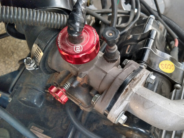 調べてみたら NIBBI(ニビ)の PE24FL というレース用の中華製キャブらしい。ネットでは割と評判もいい。