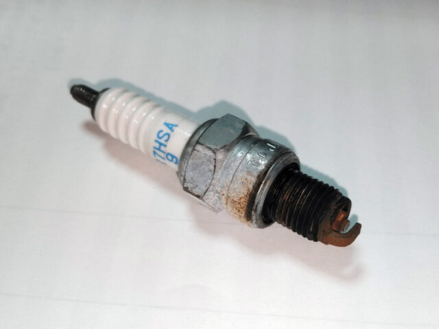 スパークプラグを抜いてみたら NGK の CR7HSA-9 (5147) が付いていた。元の Zongshen 125cc エンジンのプラグは中国製の TORCH D8RTC-9(NGK DPR8EA-9 4929 相当)らしいが、こちらはネジ径も違う全くの別物。エンジンの素性が分からずネット情報が当てにできないので、これから整備で試行錯誤しそう。