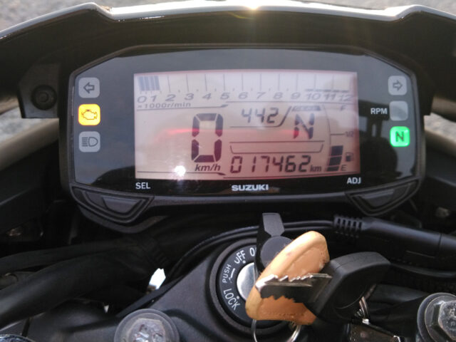 最近、ジクサーで走るとスピードメーターがゼロ表示になることがしばしば。エンジンをかけ直すと動き出すが、しばらくするとまた止まる。そしてとうとうエンジン警告灯まで点きっぱなしになった(→以前もエンジン警告灯が点灯)。