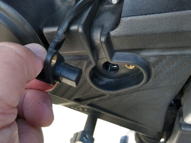で、試運転してみたらまだメーター不具合が直らない。スピードセンサーも外して掃除することに。